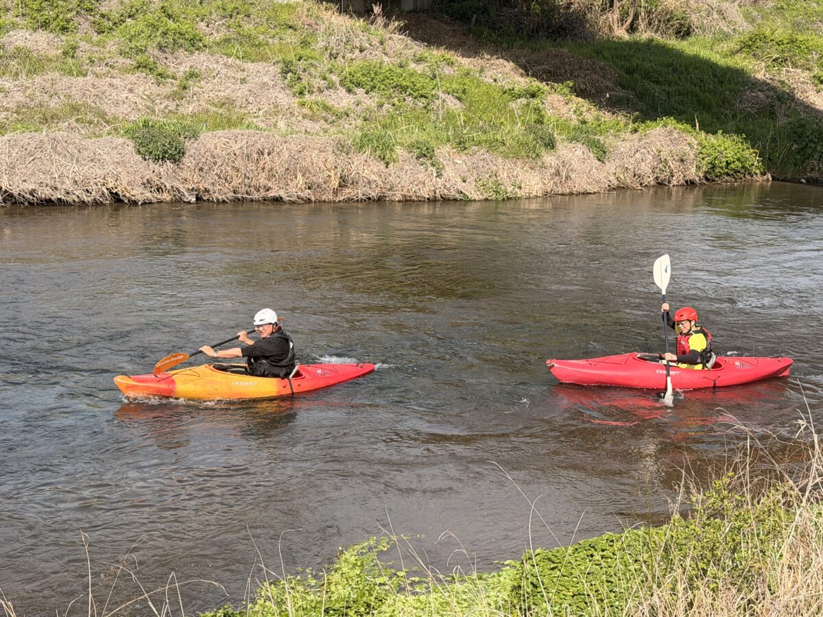 流れを渡る漕ぎ方や流れへの出入りを中心に練習しました。